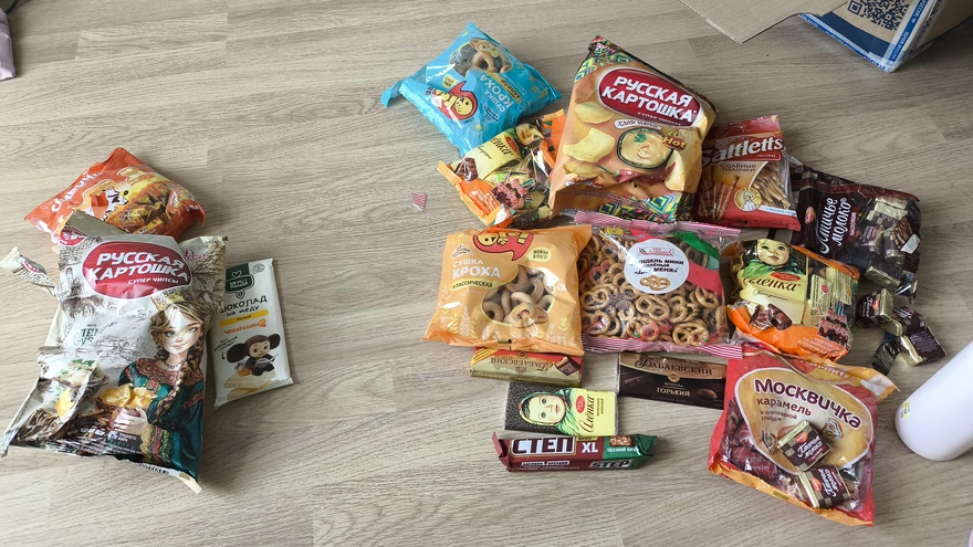 Мой парень отправил мне русские закуски из России!