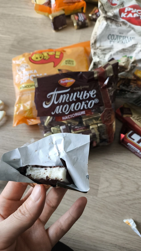 птичье молоко - это мягкое и сладкое, мне очень нравится 🥰