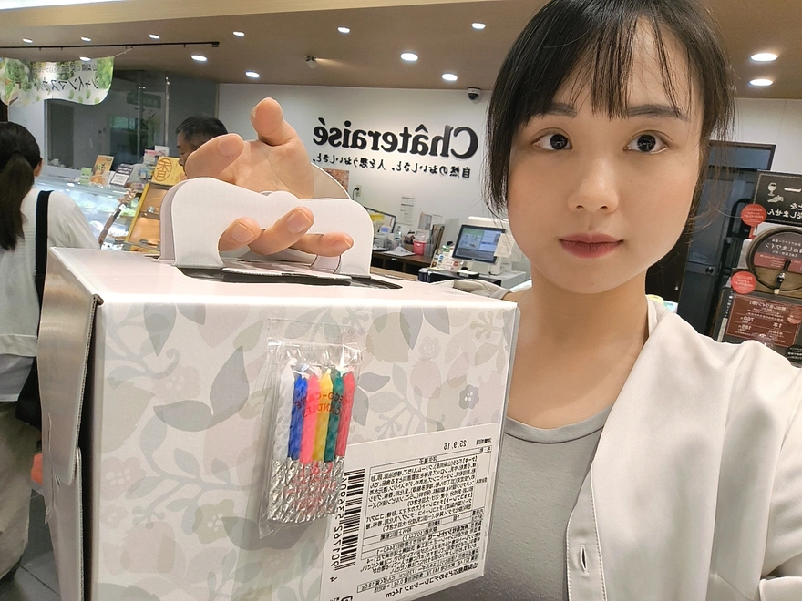 2.出勤する前にシャトレーゼに訪れしました。ディンちゃんは知らない、私がケーキを買うことを。そうだ君の誕生日ケーキを買うために来た。私は誰かの誕生日が好き。誰かは重要じゃない、ケーキを食べられるかどうかが重要なんだ!あはは、冗談。それより、久しぶりにシャトレーゼに行ったらさ、あっちもこっちもキラキラ、私の目と舌がドキドキする。「全部美味しそう!日本のデザート屋さん、最高!」