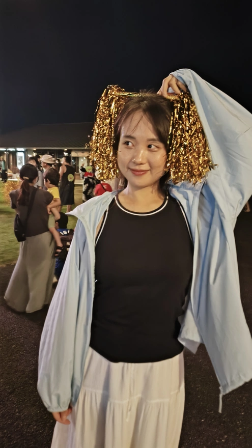 6.綺麗な浴衣を着た女性たちや子ども、家族がたくさん来ていた。舞台をぐるっと囲んで、みんなが踊り始めた。日本人は毎年やっているから、この踊りをよく知っているみたい。私には初めてだよ、気になった。私も踊りたい ><。そしてこのとき気づいた。「この半ふんズボンじゃなくて、スカートにすればよかった!コーデミスだわ!」最近 GU で買った白いスカートを思い出して、家まで走って着替えてから戻ってきた。