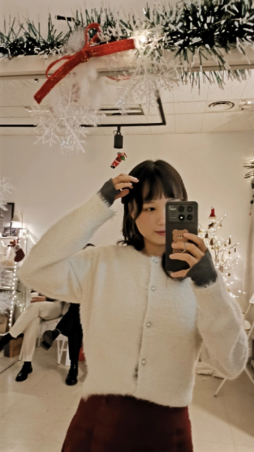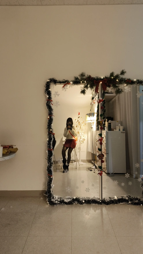 11. 일단 색은 같은 빨강색이라서 내 코디랑 어찌저찌 어울렸다.. 차분하게 마음을 가라앉힌 다음에 오늘 내 머리에 꽂고 온 🎀벨벳리본이 잘 있는지 카메라로 확인 했다. 그리고 밤은 더 깊어지고 파티도 점점 끝나갔다.