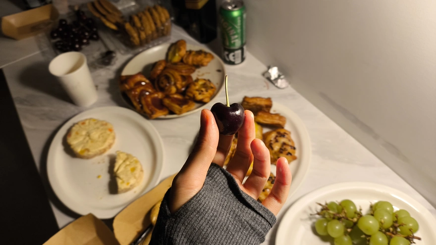 3. 모든 음식이 맛있었다. 보기힘든 체리 보고 허겁지겁 먹었다 ㅋㅋㅋㅋㅋㅋㅋㅋㅋ. 돼지같은 표정으로 먹고 있었는데 어느 예쁜친구가 와서 영어로 나보고 예쁘다고 했다🎀😍. 내가 입은 옷이 화이트랑 레드라서 산타같다고 칭판해 줬다. 그 분도 엄청 예쁘고 귀여웠다. 꺅 > ㅅ<