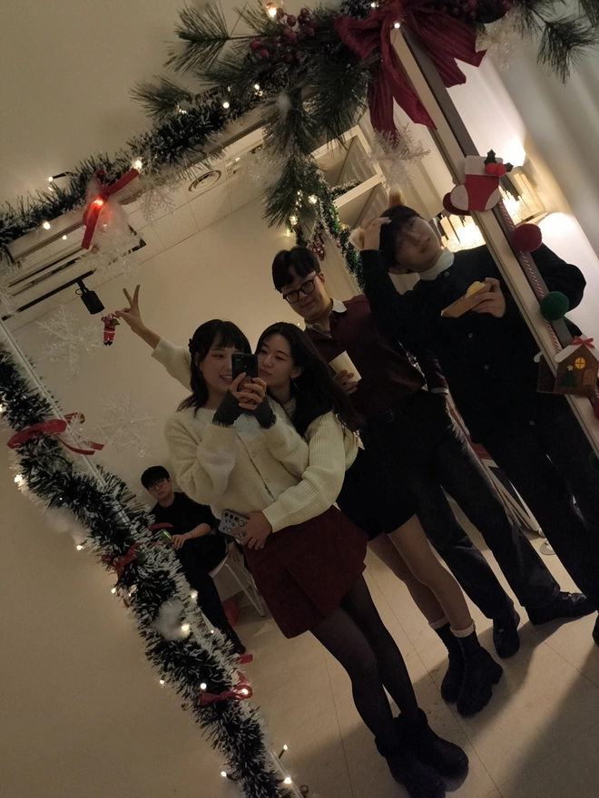 12. 불금이기 때문에 사람들은 여기에서 끝나지 않고 1차 2차까지 갔다. 나는 피곤해서 파티가 끝나고 바로 집에 왔다. 근데 셀카봉까지 가져갔는데 사람들이랑 단체사진 찍는걸 깜밖했다 ㅋㅋㅋㅋㅋㅋㅋ! 괜찮아 다음에 찍기로. 이번파티도 꽤 즐거웠다. 그럼 여기서 이만, 다들 미리 메리크리스마스~~~~><🎄🎉🍰✨🎅🥳