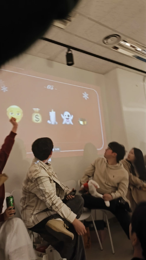 8. 다음게임은 영화이름 맞추기를 했다. 팀별로 나뉘어서 정답을 외치면 된다😆. 우연히 우리팀에 모임장이 붙었다. 모임장이면 이 파티를 주최한 사람, 이 게임의 정답을 다 알지 않을까 했는데 또 그렇지만 않았다ㅋㅋㅋㅋㅋㅋㅋㅋ😂