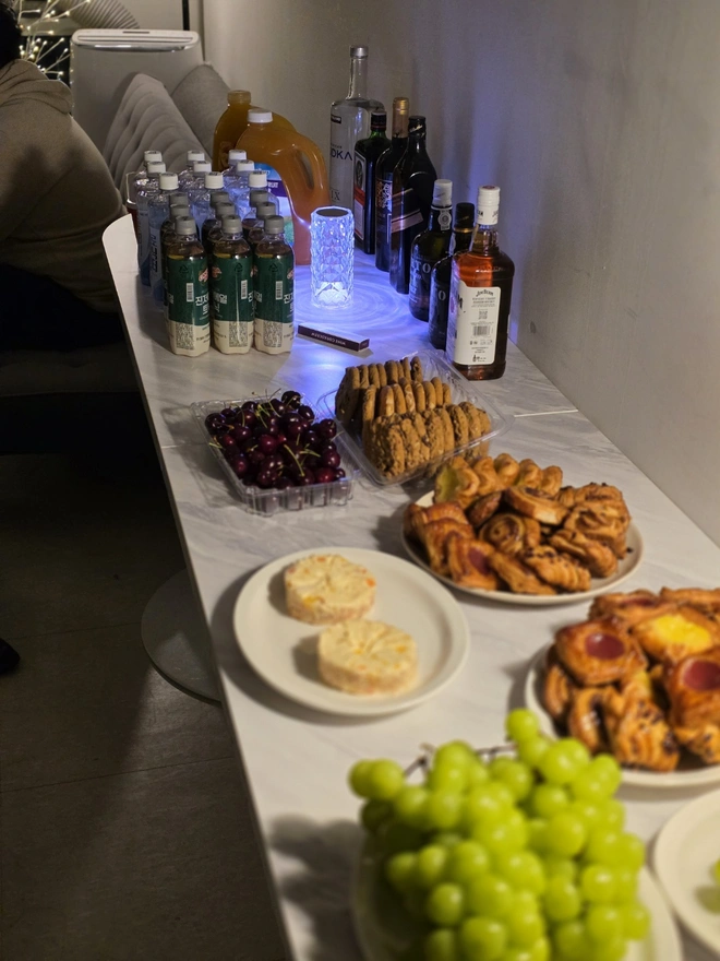 2. 도착하니 이미 파티는 시작되었다. 사람들이 엄청 많이 있었다. 그리고 맛있는 음식들이 테이블에 쫙 나열되어있었다. 나는 저녁을 안먹었기에 엄청 배가 고팠다😋. 그래서 사람들한테 인사 대충하고 바로 음식을 집어 먹었다. 내가 없는 1년 사이 새로운 사람들이 많이 들어왔다. 나는 모임장이랑 유니지 그리고 몇몇 분들 빼고 아는 사람들이 별로 없었다.