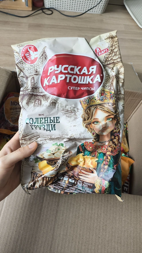 Я люблю есть картофельнйые чипсы, и эти русские очень супер😍 Это моё любимое! Но он сказал, что русские чипсы - худшие. Как можно это не любить?? Он надо попробовать опять.