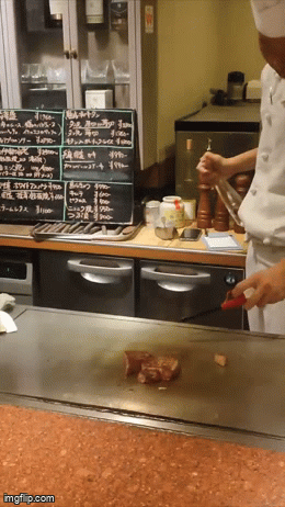 7.シェフは笑顔で自分の得意な技を発揮しながら、お肉を焼いてくれました。私も食べるのは得意なので、病気でも元気な笑顔で味わいました。「ああ、これが日本の黒毛和牛の味か! おお、そうかそうか!いいですね!うまっ!」 正直、今日イネちゃん舌はダメだから。味はよく分からなかったけど、とりあえず「美味しい」と言いました。
