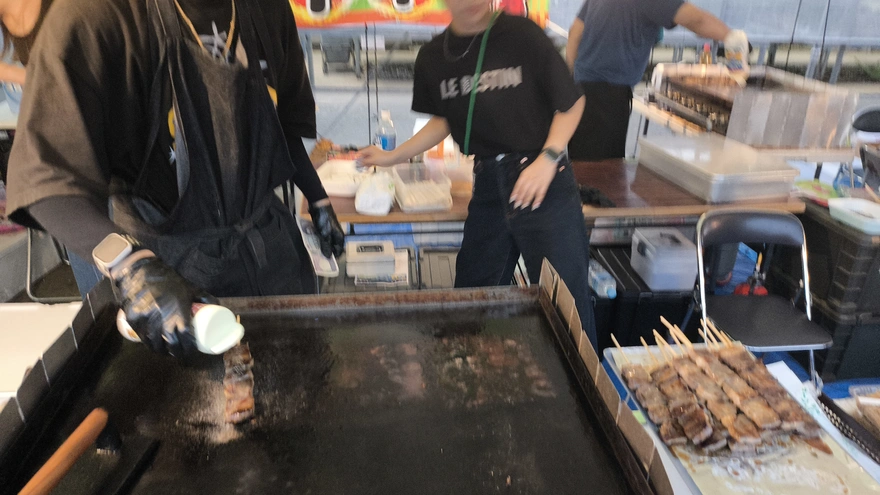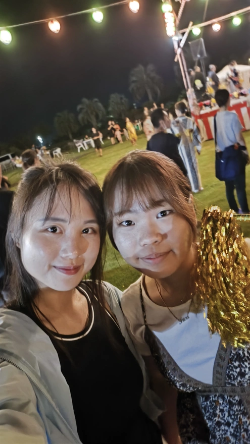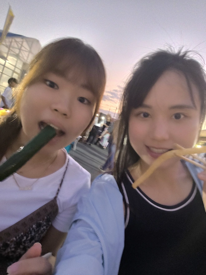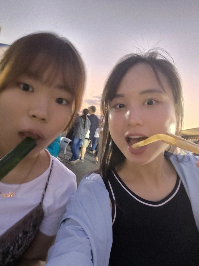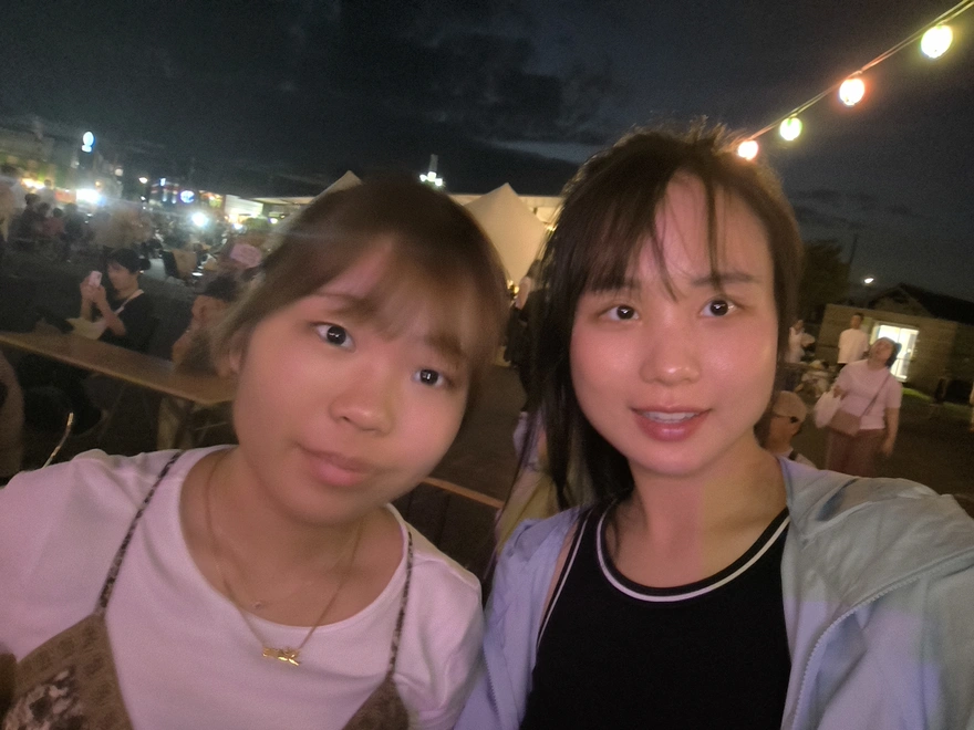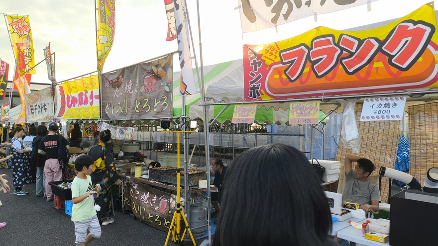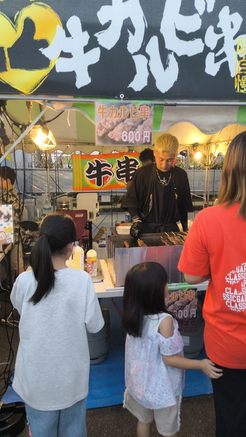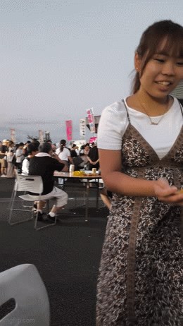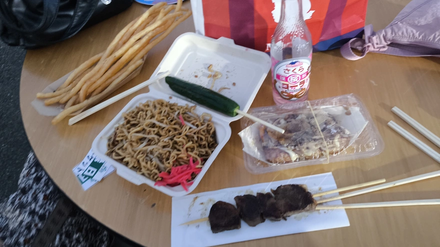 7.いっぱい運動したらお腹空いてきた。美味しそうな祭りの屋台が沢山あった。私たちはそれぞれ食べたい物を二つずつ買ってきて、一緒に食べる事になった。ていうか、シオンちゃん遅い!どこに行ってたの?何分待てたらとんでもないやつを持て表れた。「え?この長さマジ?^^?」日本にはこんなでっかいポテトがあるかなと思った。日本のサツマイモもめっちゃでっかいから。これめっちゃ美味しい、待ったかいがあった。