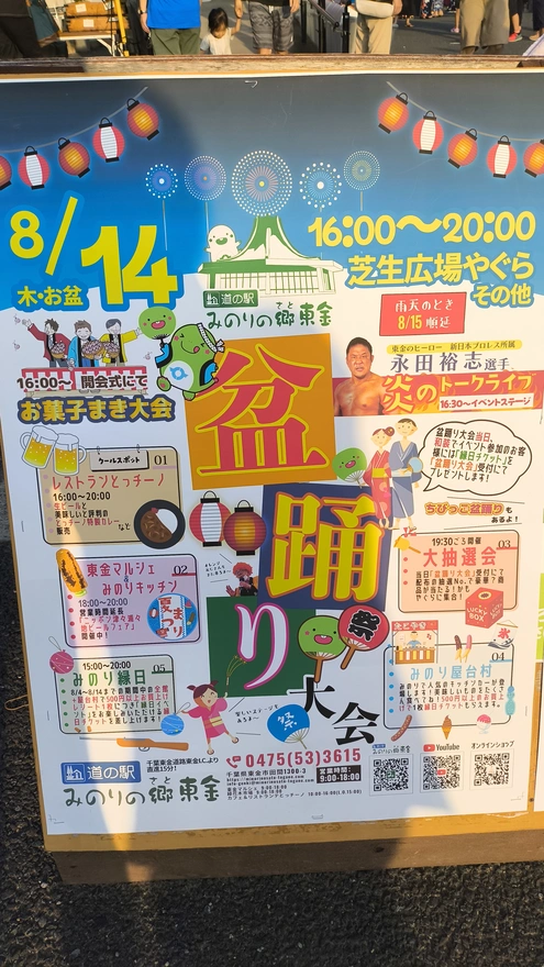1.8月14日は盆踊りの日だった。日本の夏にはいろいろな祭りがあって、街にはあちこちに広告が貼ってあった。その中でも、この盆踊りは家のすぐ近くでやっていた。これ行きたかったけど、バイトがあったから諦めるしかなかった。もっと早く知っていたら、休みを取っておいたのに。残念、もう遅い。