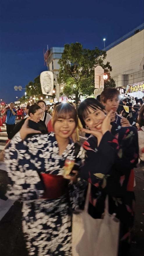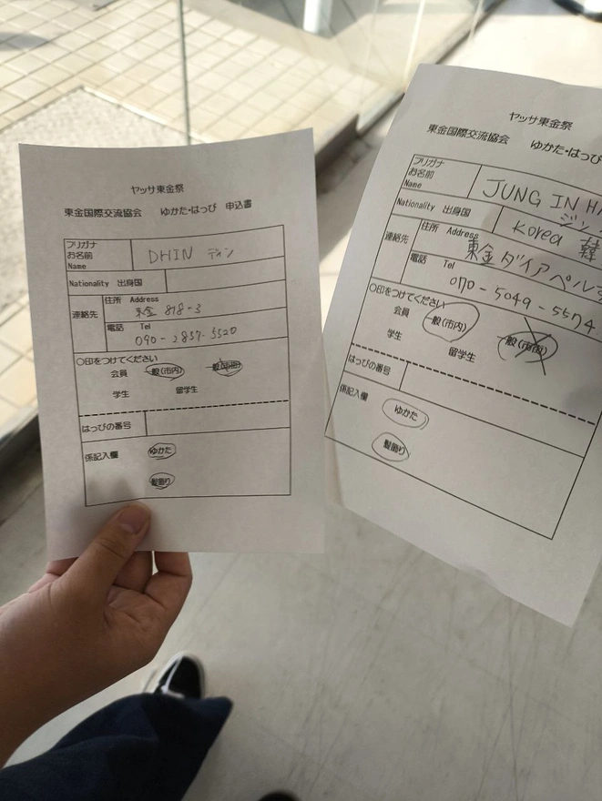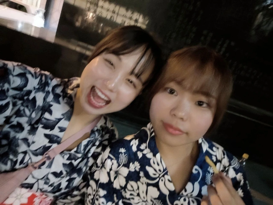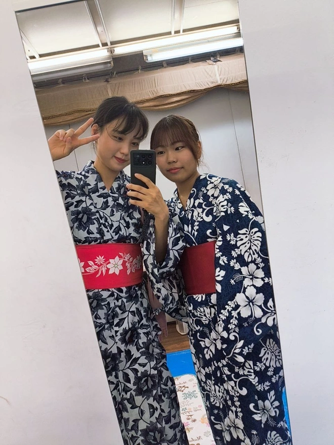 3.けも浴衣着付けは外国人限定、日本人はダメ。それで友達はギブアップしたところが、私が自信満々で言った。「大丈夫!君は外国人ふりして一緒にレンタルしよう。絶対ばれない!私がいうから君は一口も言わないで!」。それでしおんちゃんはベトナム人のふりをして一緒に入ることが出来ました。ディンちゃんは本当にベトナム人。彼女の名前貸したアハハ。