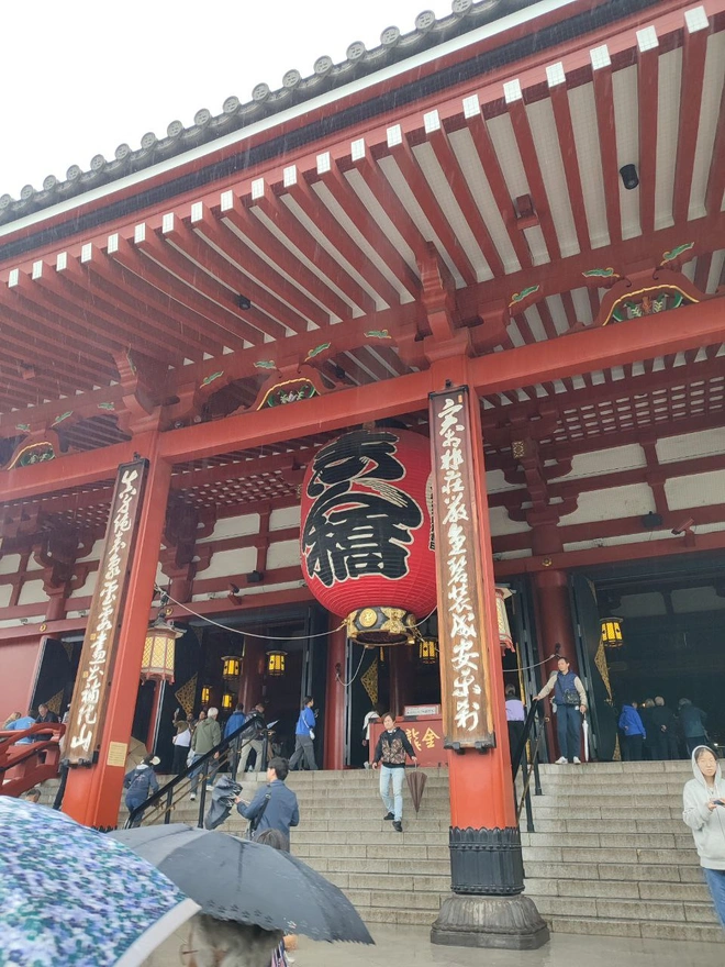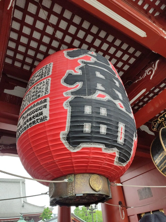 8.この写真が一番好き。雨が降っているけど、まるで雪が降っているみたい。この赤い大提灯に「雷門」と書いてある。風神と雷神がこの門を門を守っているわけです。めっちゃでっかい。こんなもんが総計3個もあります。