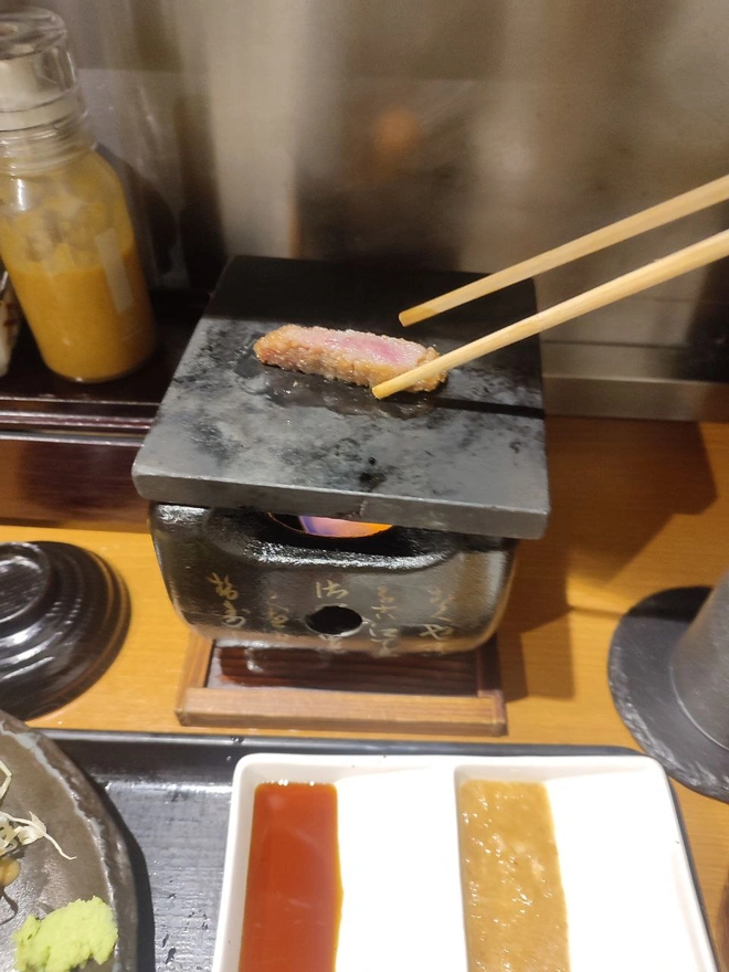 13.それで晩御飯はこれで決めた。これ韓国でめっちゃ有名。石の上で自分で焼きで食べる牛かつ。私は一回食べたことあるけど、日本旅行が初めての友達におすすめした。「日本へきったらさ、これ絶対食べてみなきゃ!」