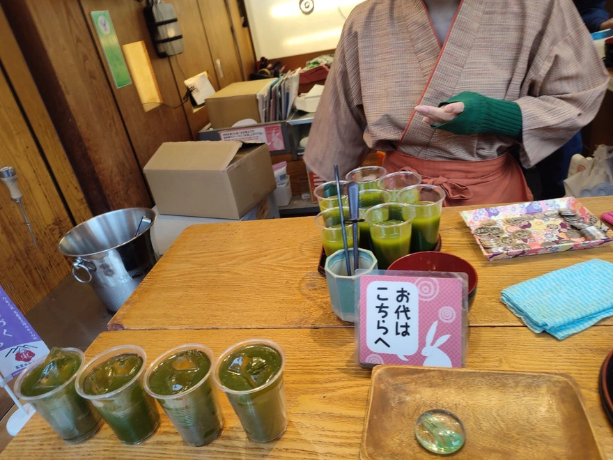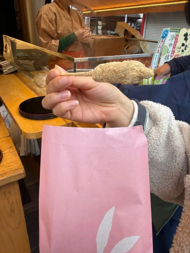 10.寒いのに、アイス抹茶しか売ってない。代りにきな粉餅を食べました。私豆と大豆大好き、友達と分けて食べました。甘くって美味しい。
