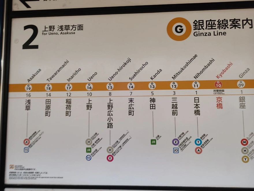 4.そしてバス駅から出て、京橋駅まで歩いて銀座線を乗って浅草に行きました。日本電車ちょっと難しいと思われました。いっぱい歩けなきゃいけない。