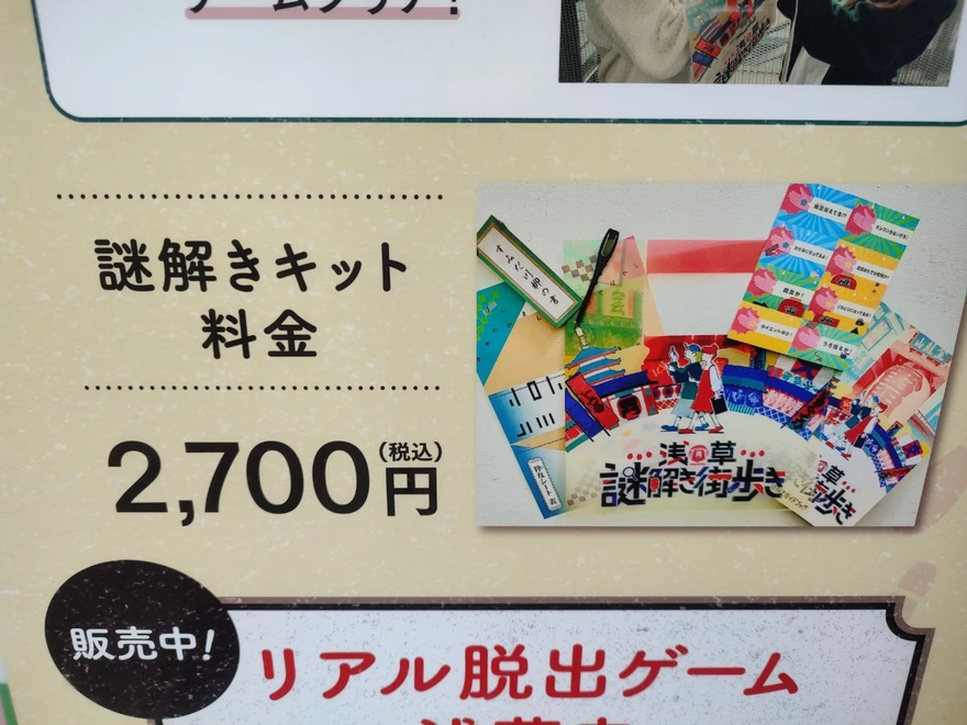 5.あら、謎解き面白そう。でも高い!浅草でなにをやるかな?今日雨だからあまり外で遊ばないかも。